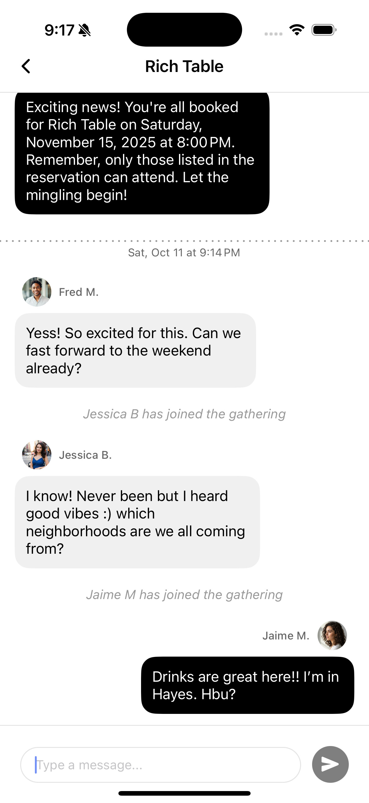 Chat with in-app private group chats and get to know each other prior to the Gathering